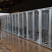 Here are a few pictures of some of TK Products customer’s indoor and outdoor dog and boarding kennel setups. We try to post a variety of kennel and cage configurations from the large boarding kennel and veterinarian systems to a simple single back yard dog kennel.