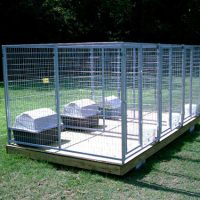Here are a few pictures of some of TK Products customer’s indoor and outdoor dog and boarding kennel setups. We try to post a variety of kennel and cage configurations from the large boarding kennel and veterinarian systems to a simple single back yard dog kennel.
